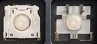 Our comparison table shows both the hinge shape as well as the same area without the hinge. Most alphanumeric keys will use a hinge shape located under the 'Normal Key' column. Larger keys (Enter, Backspace, etc.) will generally use hinges similar to those shown under the 'Large Key' column. Small keys (such as the top row function keys) will use hinges under the 'Small Key' column. Arrow key hinges may be horizontally mirrored. Bottom row hinge shapes and some larger keys may not be presented. We show only the most common hinge shapes that cover 90% of keys. If yours doesn't match or you are unsure in any way, do not guess! Simply contact us and we'll help you find the right part!