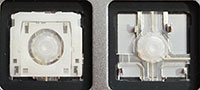 Our comparison table shows both the hinge shape as well as the same area without the hinge. Most alphanumeric keys will use a hinge shape located under the 'Normal Key' column. Larger keys (Enter, Backspace, etc.) will generally use hinges similar to those shown under the 'Large Key' column. Small keys (such as the top row function keys) will use hinges under the 'Small Key' column. Arrow key hinges may be horizontally mirrored. Bottom row hinge shapes and some larger keys may not be presented. We show only the most common hinge shapes that cover 90% of keys. If yours doesn't match or you are unsure in any way, do not guess! Simply contact us and we'll help you find the right part!